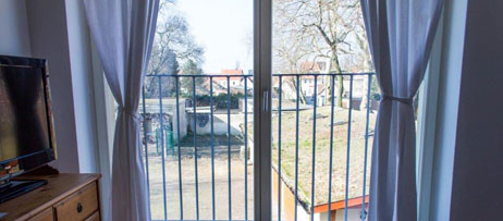 Unsere hellen, geräumigen Ferienwohnungen befinden sich im ehemaligen Verwalterhaus des Schloss Plaue und in Nebengebäuden direkt am Schlosspark nur wenige Meter von der Havel entfernt.